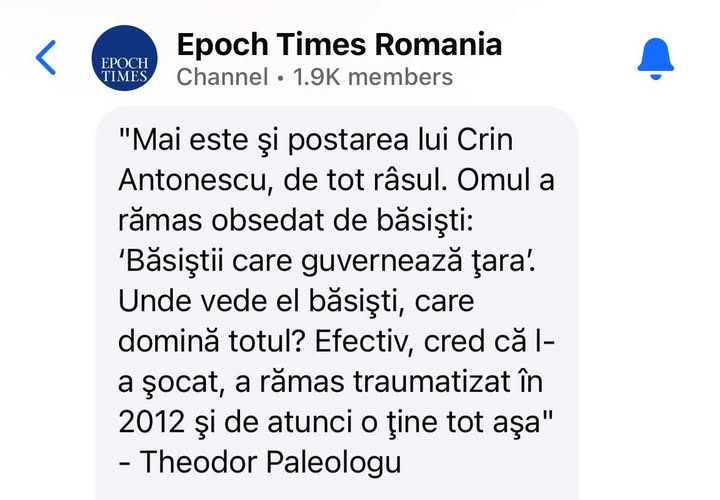 Crin Antonescu nu a rămas șocat de Băsescu! Dar el știe o sociologie elementară care spune ca, deși Era Băsescu a trecut, ura față de el, cultivată obsesiv de PSD pe canalele lor în acea perioadă, a rămas așa cum a rămas antisemitismul sau nazismul (ca tip de hate) după aproape un secol. Asa ca Crin incearca sa speculeze acest hate mai recent fata de Ba…